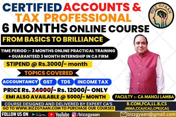 Bizz Gyaan launches Certified Accounts and Tax Professional Course This online course is based on Practical Learning and skill enhancement.We aim at providing Practical Knowledge and ensuring that you get guaranteed Internship in CA Firms.